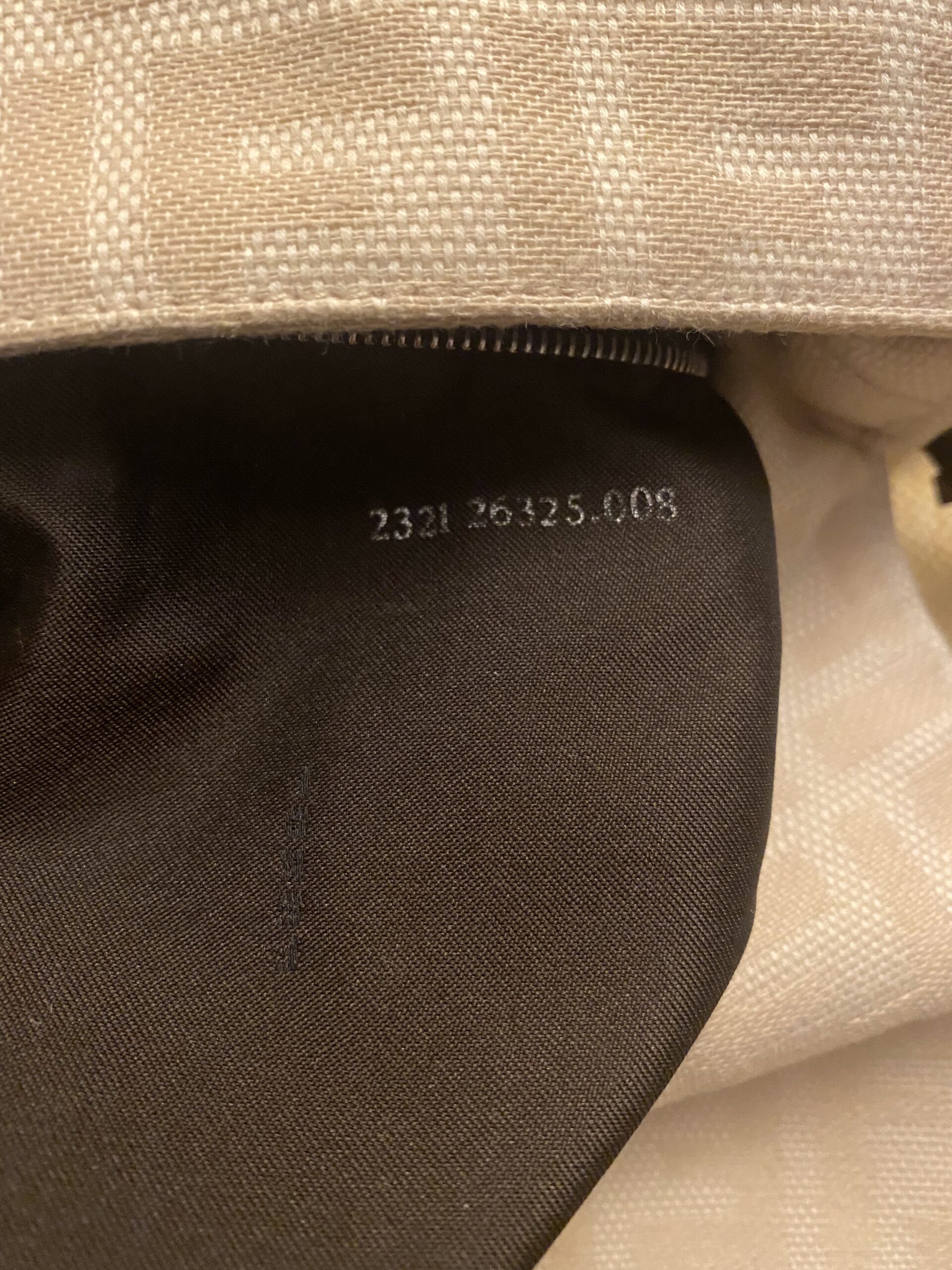 בחלקו הפנימי ישנו תא נוסף שנסגר עם רוכסן. מידות התיק: רוחב 28 ס״מ x אורך 21.5 ס״מ עומק 11 ס״מ. מספר סידורי: 008 26325 2321.