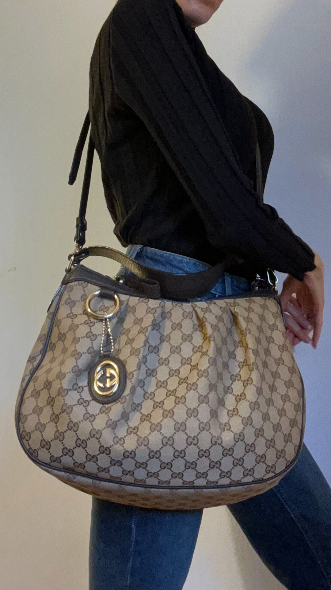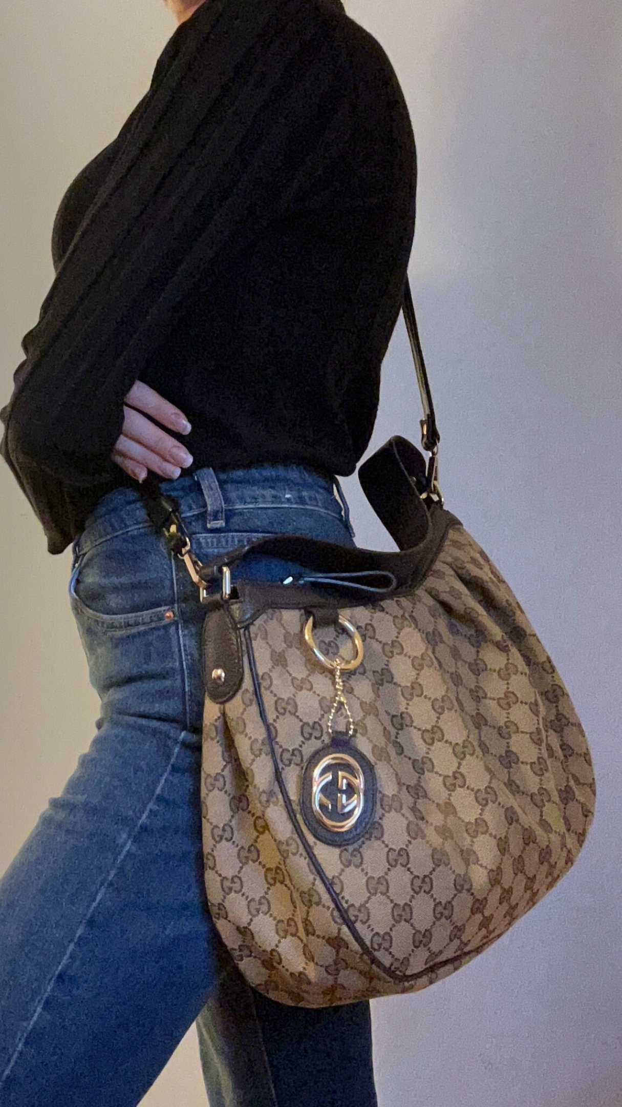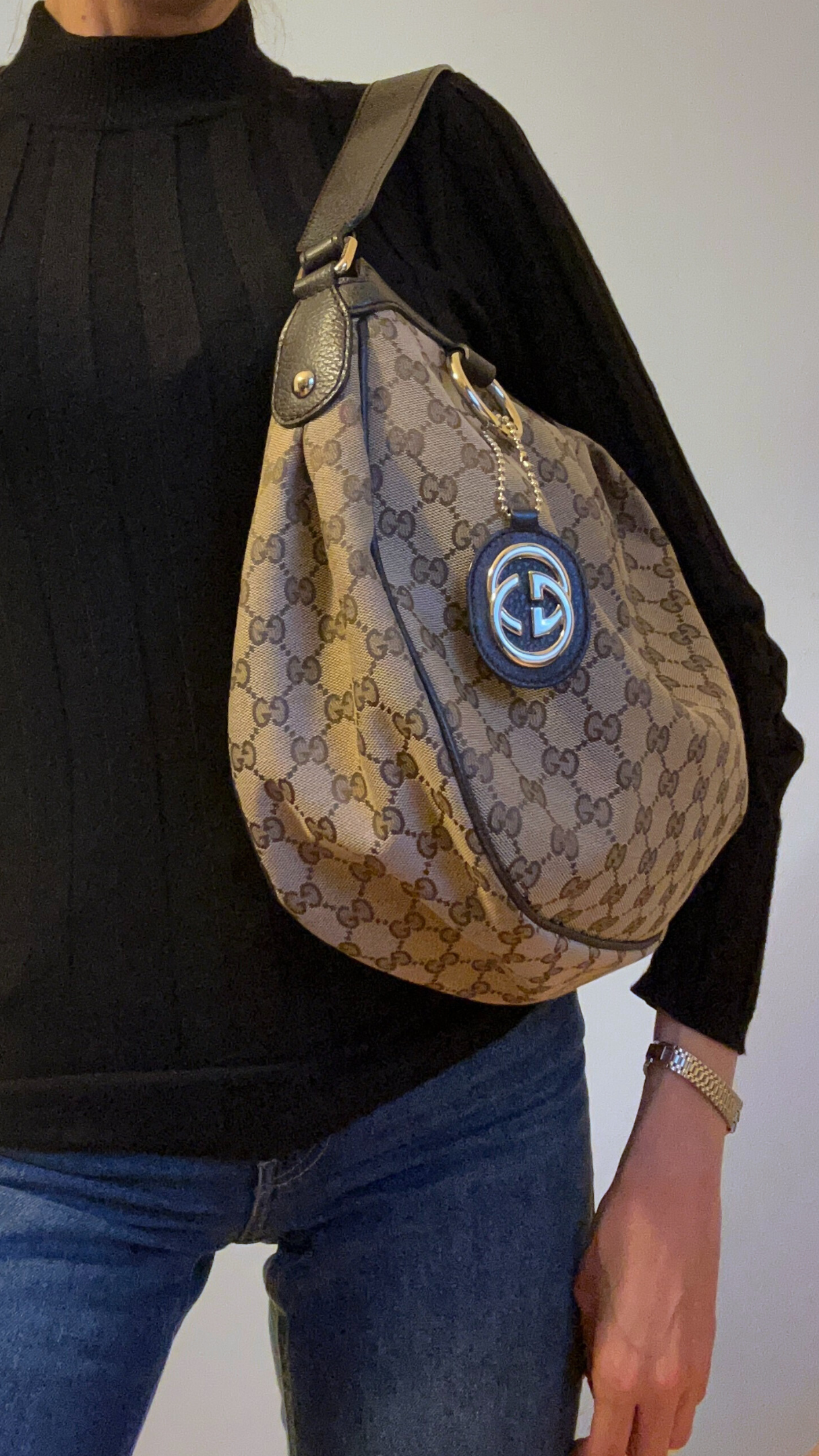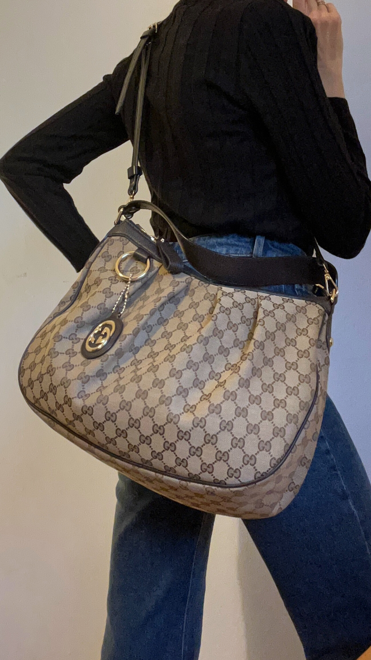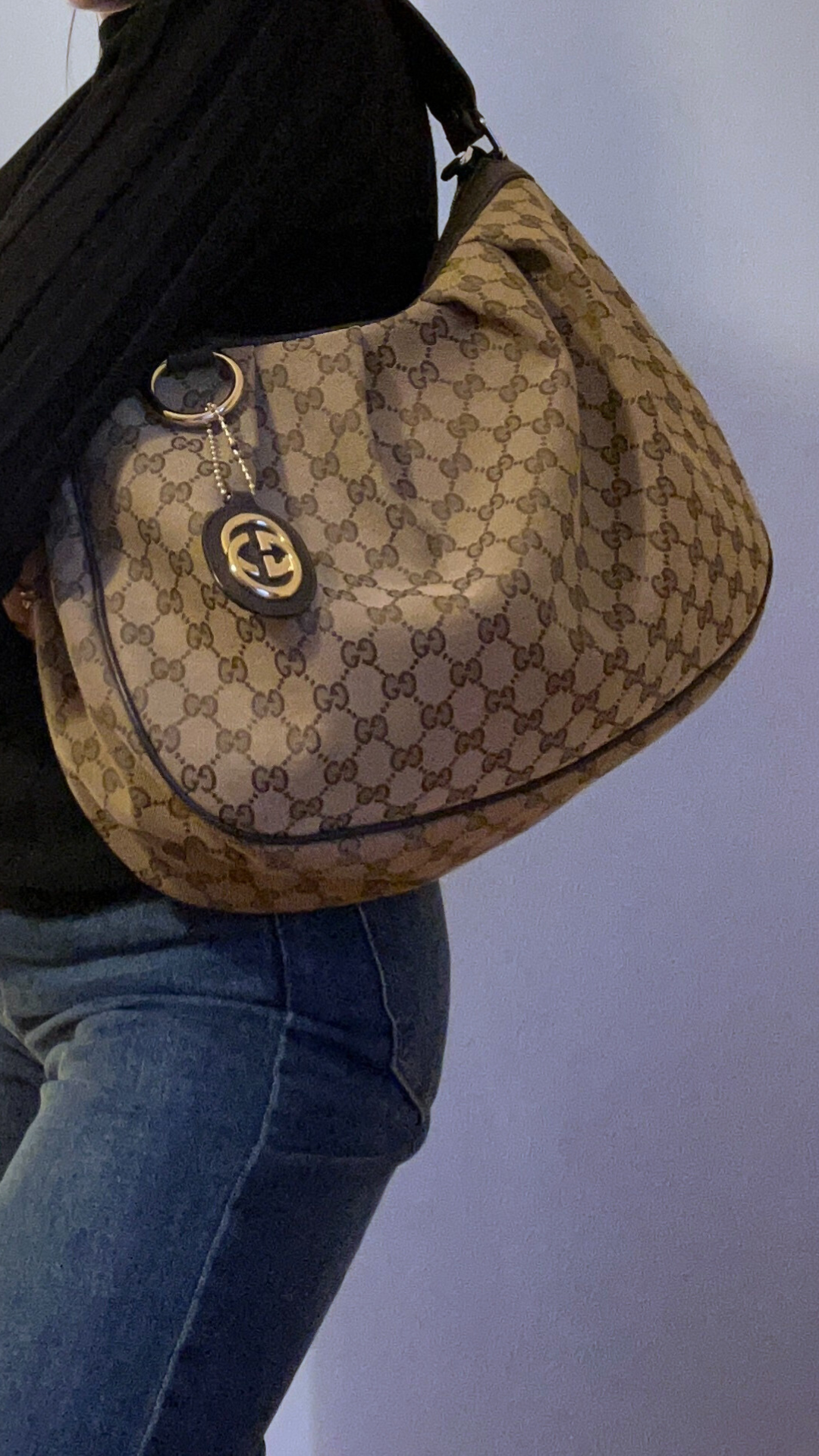 התיק מגיע עם תעודת מקוריות (פנו אלינו ונשמח לשלוח לכם אותה) ושקית אבק מקורית. משלוח חינם או איסוף עצמי מתל-אביב, בתיאום מראש. תיק כתף מהמם של גוצ׳י, יכול להכיל את כל החפצים החיוניים לנו (אייפד, בקבוק מים פלאפון, אוזניות, ארנק, מפתחות, איפור וכו׳) ישנו תא אחד גדול, כיס נוסף שנסגר בעזרת רוכסן ו-2 תאים קטנים נוספים. לתיק לולאות זהב שאליהן ניתן לחבר גם רצועה ארוכה (לא ממותגת, ניתן להזמין רצועה בתוספת תשלום) וללכת עם התיק כתיק כתף או קרוסבודי. תיק מלא סטייל שמוסיף עניין לכל לוק שנבחר! מושלם לעבודה, לימודים או לנסיעה. התיק עשוי קנבס עם הדפס המונוגרם המפורסם של המותג בגוונים החומים המהפנטים והמוכרים של בית האופנה ועם מסגרת עור בגוון חום שוקולד שיכולים להשתלב עם כל אאוטפיט שנבחר. בחלקו הקדמי נתלה אבזם מוזהב ממותג מהמם שמוסיף לתיק מראה יוקרתי.